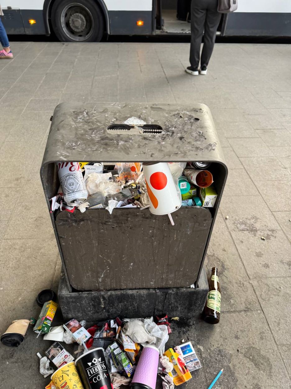 Именно вокруг урны должны быть чисто не потому, что не мусорят, а потому что убирают. Направим запрос в местную администрацию, чтобы выяснить, почему они выглядят именно так — вернёмся с ответом.