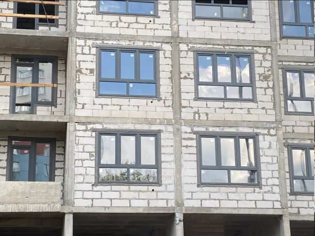 Верхние этажи ещё совсем не достроены, однако на этажах с первого по пятый в некоторых местах уже установили окна и балконные блоки. «Пока сверху рабочие будут надстраивать корпус, на нижних этажах займутся коммуникациями — трубами, электричеством и вентиляцией», — предполагают в управе.