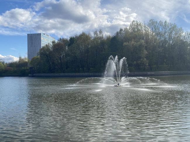 Хорошая погода во вторую половину предпраздничного дня позволила прохожим в парке Победы и на набережной городского пруда сделать первые в этом году фотографии фонтанов — наш корреспондент тоже не упустил момент.