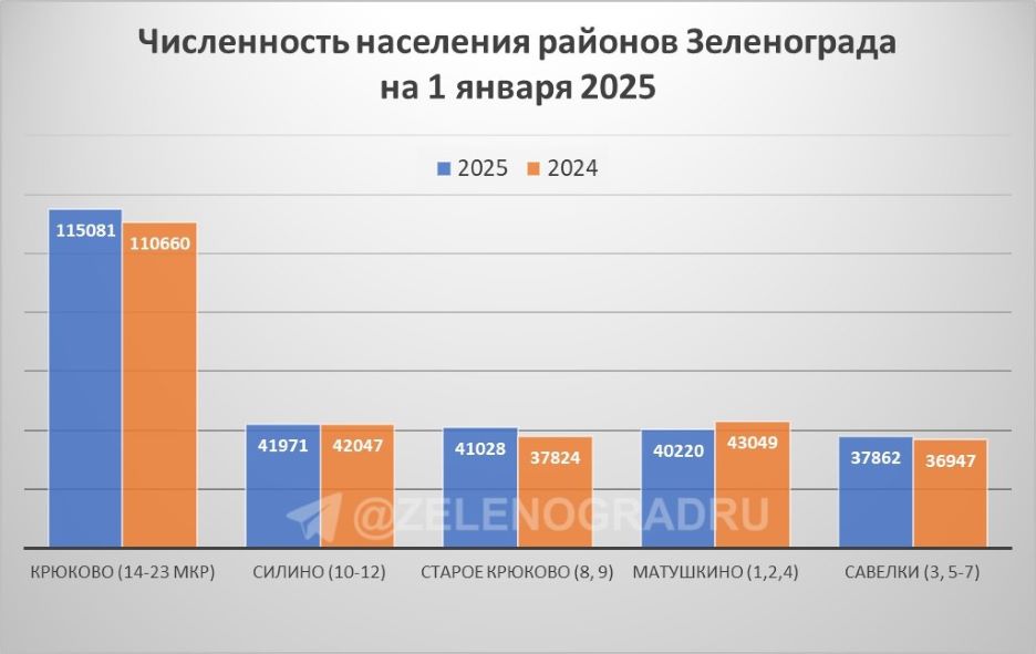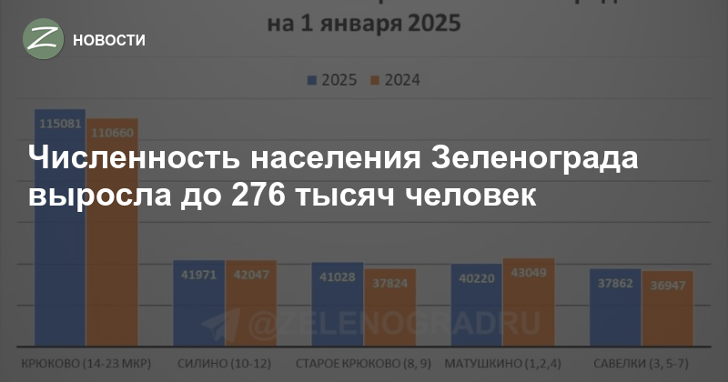 Если быть точным, то на начало 2025 года в Зеленограде официально насчитали 276 162 человека, выяснил «Зеленоград.ру», изучив данные Росстата. Это на 5635 человек больше, чем годом раньше. Рост почти на 2,1% — это меньше, чем в прошлом году, но всё равно много. Для сравнения — численность населения Москвы за год выросла на 0,9%.
