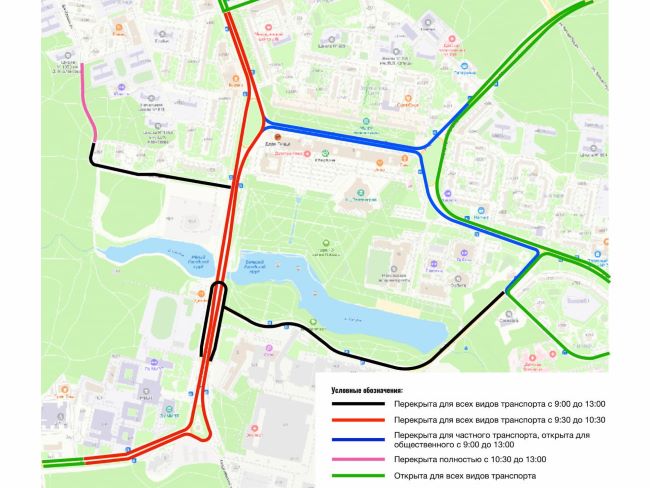 - Березовая аллея: с 9:30 до 13:00 полностью перекроют от Центрального проспекта до поворота во дворы корпуса 451, с 10:30 до 13:00