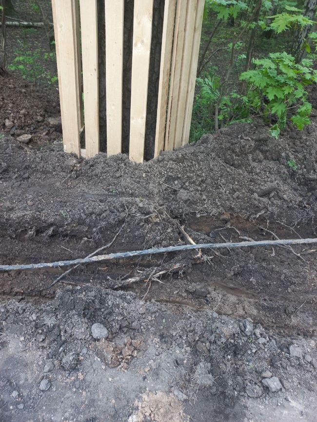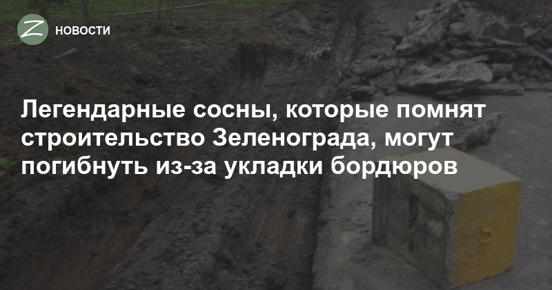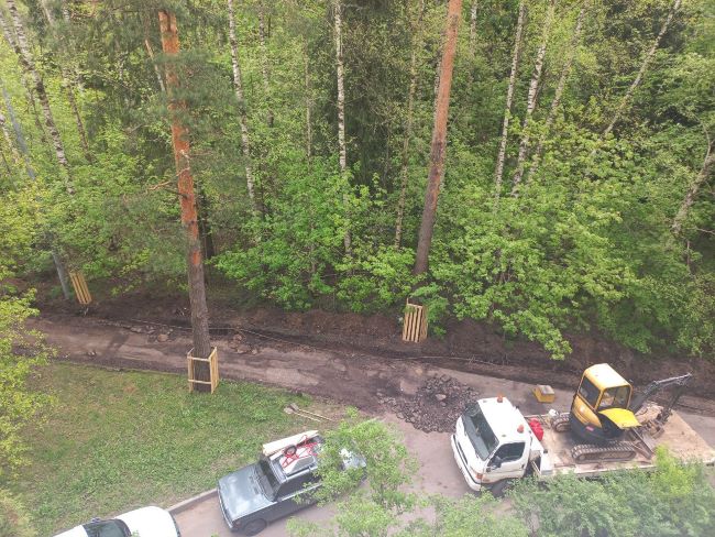 Траншеи для укладки бордюров роют вдоль пешеходных дорожек 5-го микрорайона, рядом с которыми растут сосны, которым по меньшей мере 70 лет. Например, они попали в кадры фильма про строительство корпуса 501 бригадой Николая Злобина, в честь которого много лет спустя была названа одна из зеленоградских улиц. Фильм снимали в 1971 году, и уже тогда сосны были большими.
