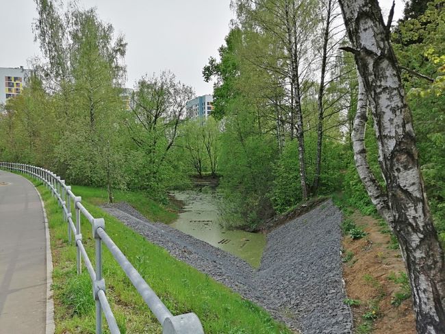 Пока дорожное строительство затронуло природу в необходимом минимуме: у старого пруда (Овражный на некоторых картах) укрепили склон возле дороги.