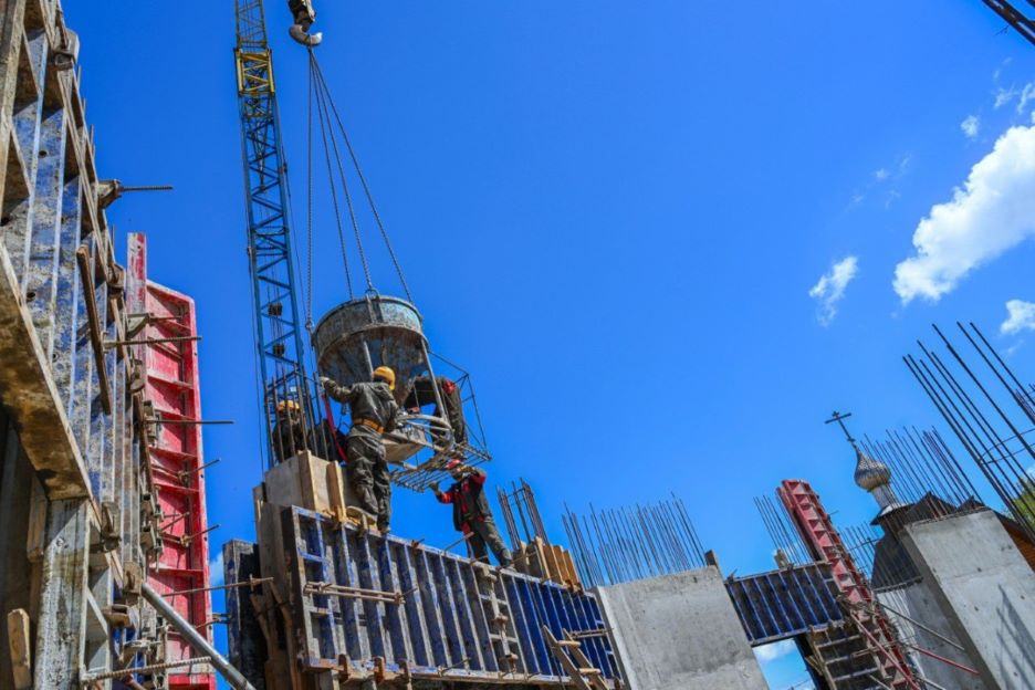 Концерн «Крост» передал Филаретовскому храму 400 кубометров бетона. Поставки начались в минувший четверг. Этого объёма хватит для завершения всех монолитных работ.