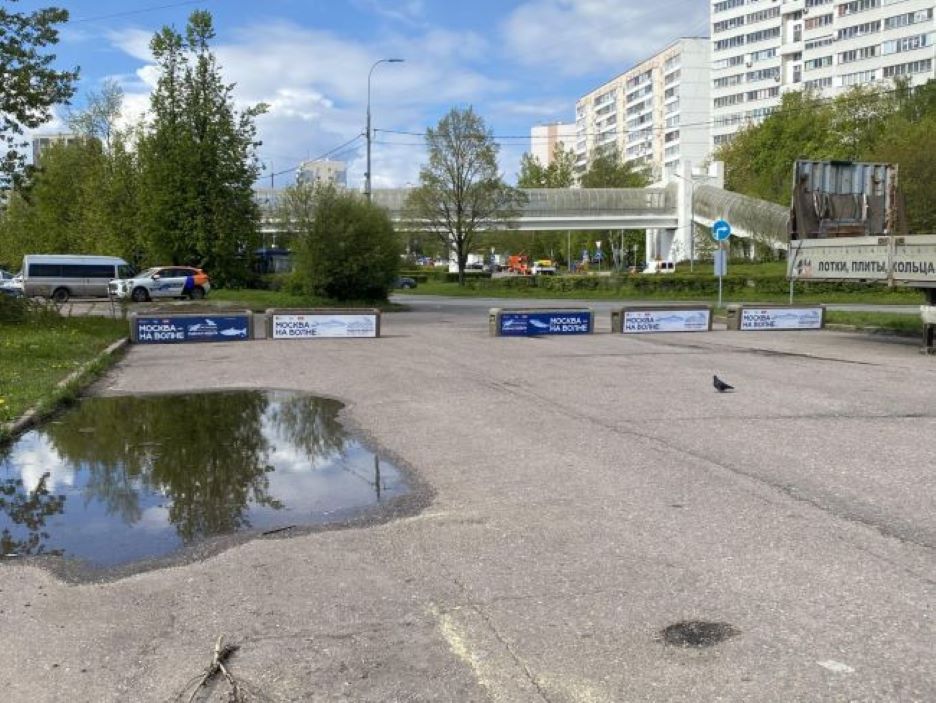 В качестве ограничения проезда для крупногабаритных машин установили лавочки-блоки, оставив небольшое пространство для легковых автомобилей 1,5-2 метра. Кроме блоков поставили дорожный знак.