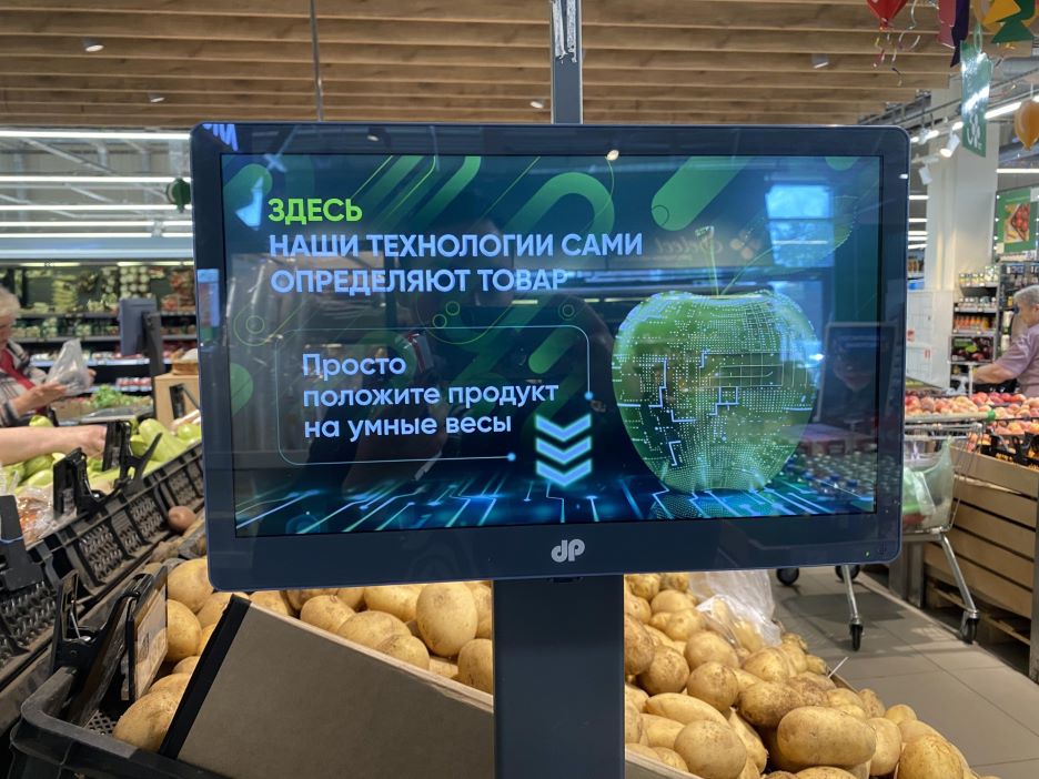Шесть новых аппаратов установлены рядом с отделом овощей и фруктов в корпусе 1549. Положите товар на весы — система с помощью машинного зрения распознает товар и предложит несколько наиболее похожих вариантов продуктов, после чего выберите свой и наклейте штрих-код.