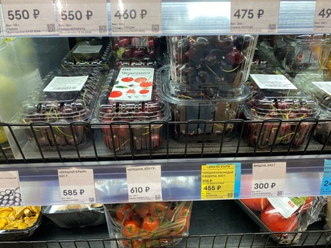Во «Вкусвилле» самая высокая стоимость в пересчёте на килограмм: черешня — 585 за 500 г (1170 за кг), малина — 550 за 125 г (4400 за кг), вишня — 300 за 500 г (600 за кг), голубика — от 230 рублей за 125 г до 550 за 300 г (цена от 1840 до 2200 рублей за кг)
