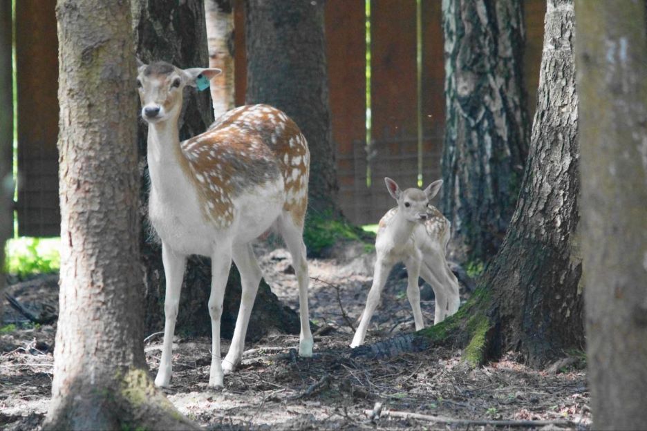 Специалисты центра рассказали, что беременность у европейской лани длится 7,5-8 месяцев, а роды приходятся на май-июнь. Какое-то время после родов самка прячет детёныша, пока он не окрепнет, и только затем приводит его знакомиться со стадом. Самка кормит олененка молоком около 4 месяцев.
