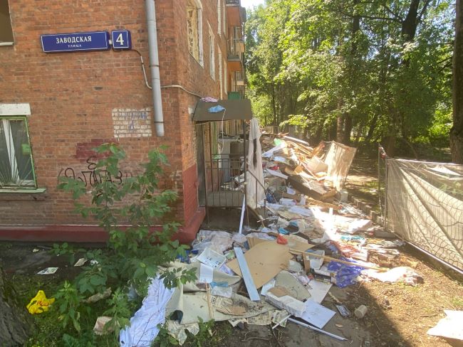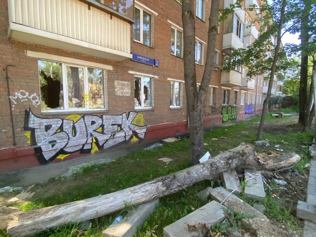 Из дома 4 выбрасывают оставшийся от жильцов хлам. В остальных домах работы пока не ведутся. Во многих квартирах осталось много мебели, где-то даже висят шторы. В дома легко проникнуть: окна разбиты, охрана неэффективна — там часто происходят пожары.