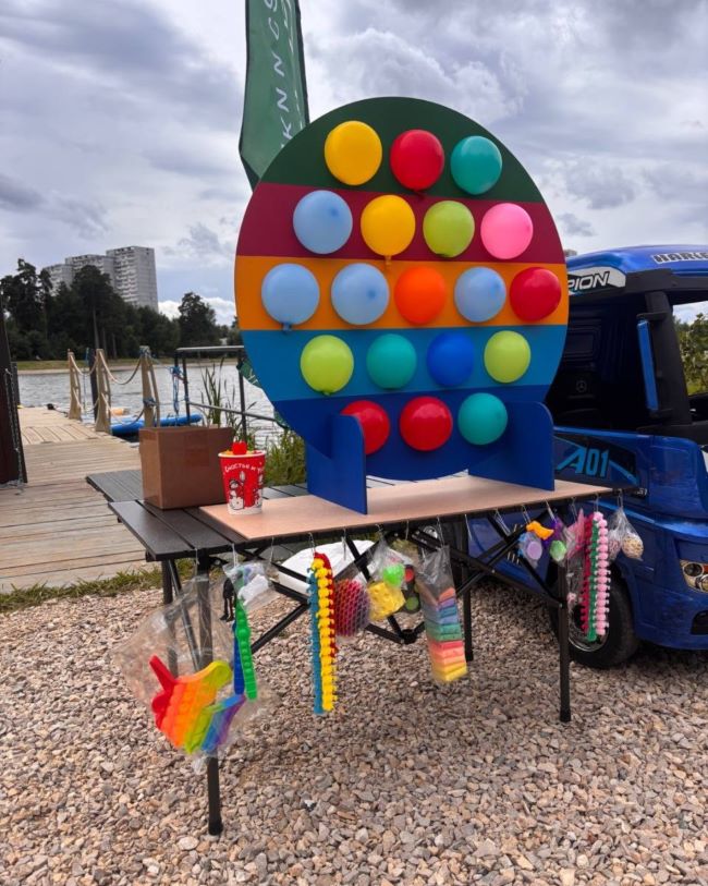 Тир «Лопни шарик» — 250 рублей за игру: на дистанции в 1,5 метра необходимо лопнуть 9-10 шариков. Победитель получает подарок, чаще всего, игрушку. Утешительные призы выдаются всем участникам.