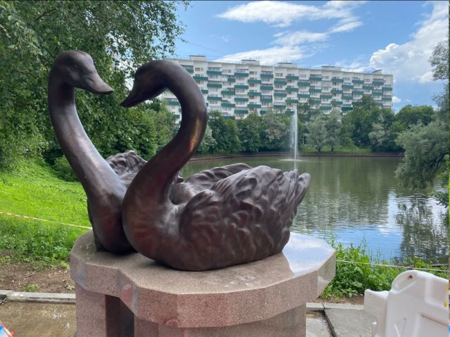 Исчезновение скульптуры начали обсуждать в чате района еще в пятницу — сначала остался один лебедь, а потом пустой постамент.