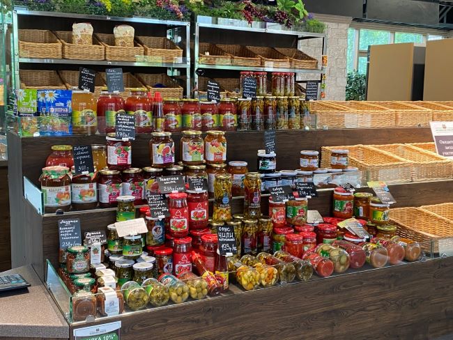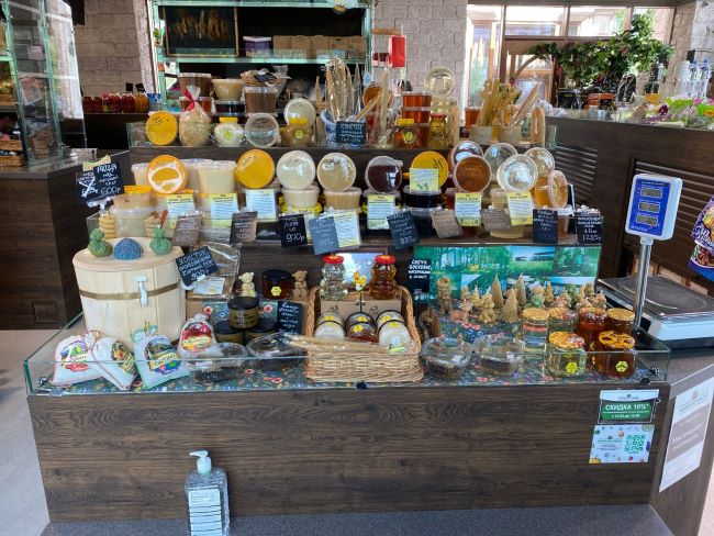 На ярмарке в 16-м микрорайоне ситуация ещё скромней: овощей и фруктов нет совсем, работают всего четыре палатки. В продаже — мёд (от 600 рублей), бакалея, соленья, варенье, соки прямого отжима (от 525 за 2 литра), сладости. Покупателей практически нет.