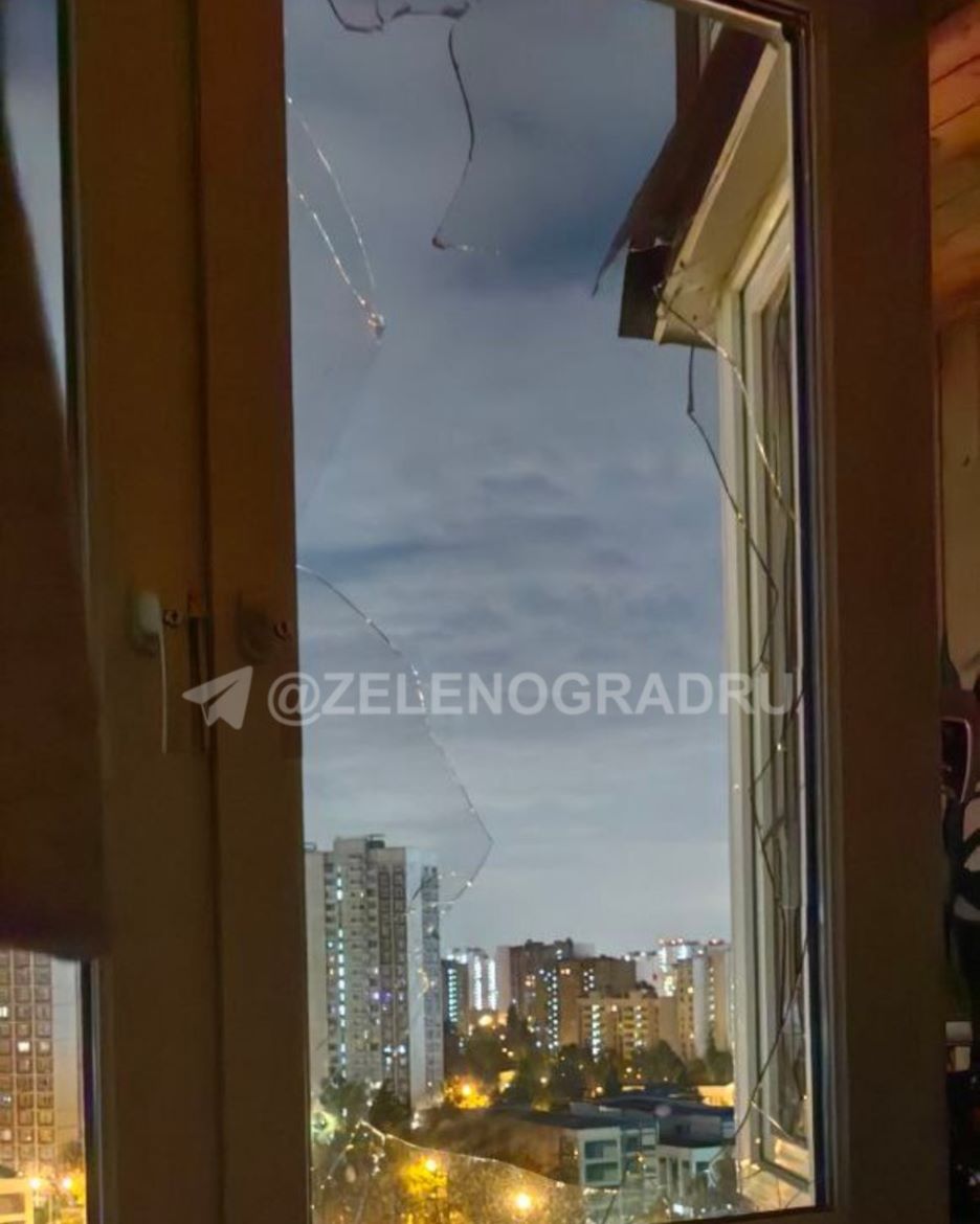 На фото — последствия отражения атаки БПЛА в одном из районов Зеленограда. Объясняем, почему окно может стать смертельно опасным.