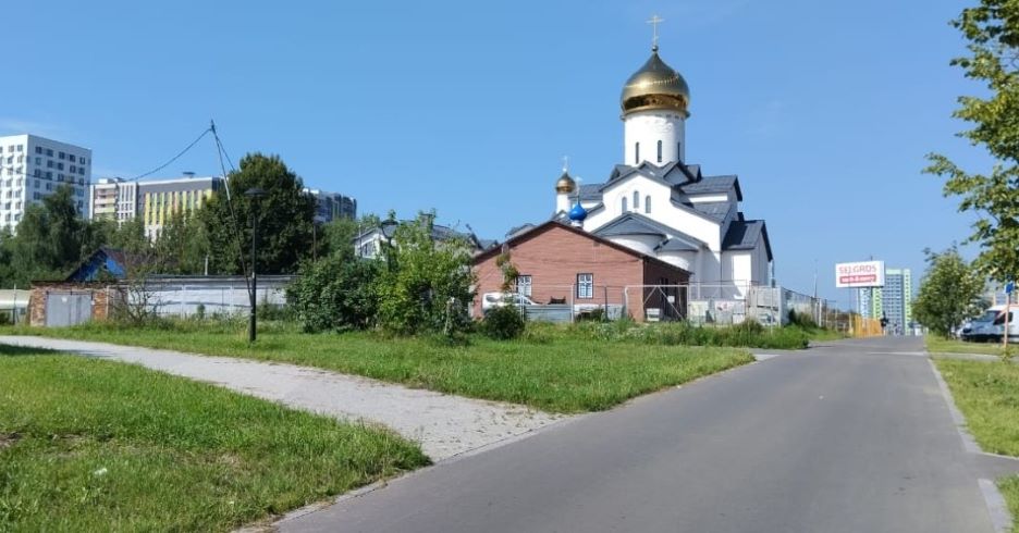 Это второй этап реконструкции проезда. Первый прошёл в прошлом году: дорогу сдвинули и обновили асфальт. Это понадобилось сделать, потому что территория, выделенная для строительства и эксплуатации храмового комплекса Георгия Победоносца, частично «заехала» на существующий проезд. Тротуар есть только возле фитнеса. Также в проезде поставили знак, запрещающий парковку.