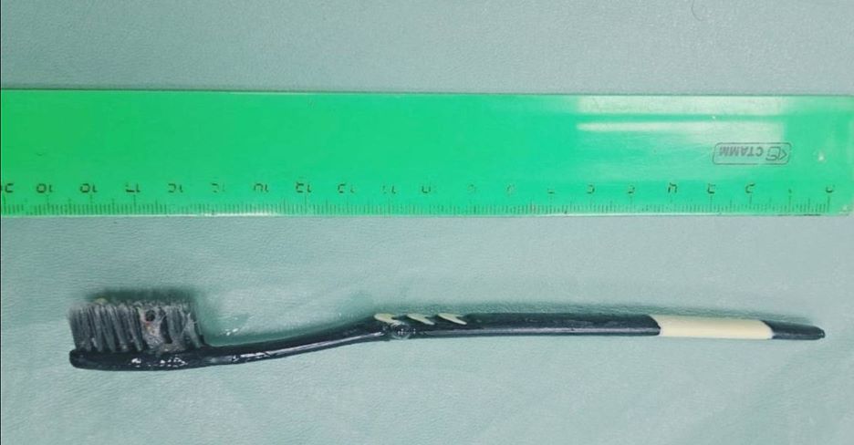 «Зубная щётка длиной 18 см, частично располагалась в желудке, а концом со щетиной была фиксирована в луковице 12-перстной кишки. Такая локализация представляла угрозу повреждения слизистой и развития серьёзных осложнений», — рассказал Александр Крылов — заведующий эндоскопическим отделение ГКБ им. Кончаловского, проводивший процедуру. — «Щётка была аккуратно захвачена эндоскопической петлёй, смещена обратно в желудок и затем извлечена наружу вместе с аппаратом».