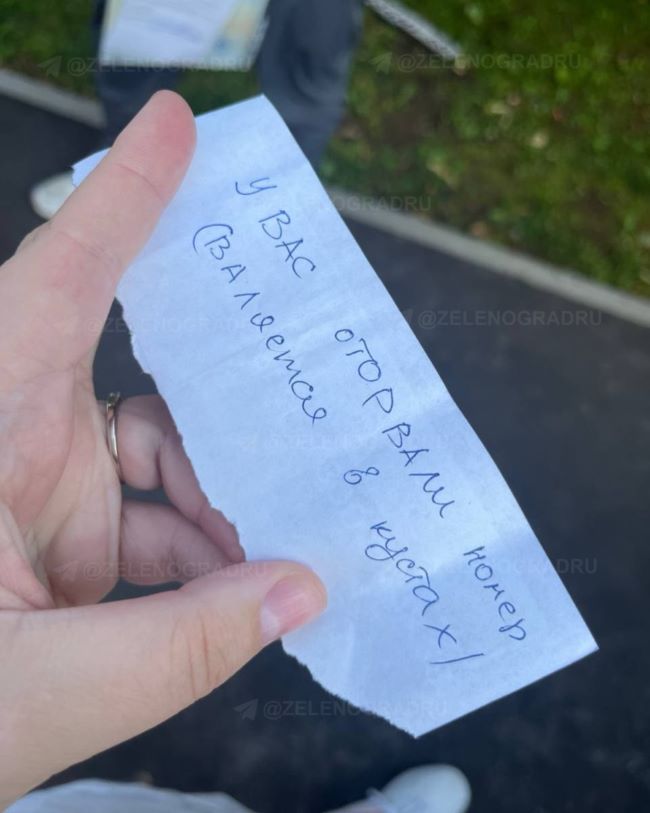 «Мы вышли к нашей машине, а у нее нет номера и рядом с ней валяются в кустах. И записка», — сообщила местная жительница.