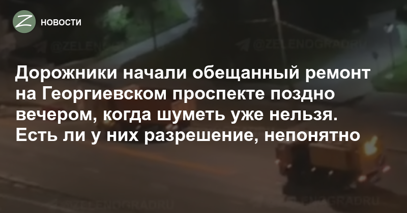 Шумные работы должны прекращаться с 23 до 7 утра, если ночные работы не разрешены специально. Проверить разрешение на ночные работы может полиция — звоните им по номеру 112. Выдачей разрешений занимается административно-техническая инспекция (ОАТИ) — их «горячая линия» не работает оперативно, поэтому жалобу можно оставить по круглосуточному телефону мэрии +7-495-777-77-77. В списке действующих ордеров на производство работ или запланированных дорожных ремонтных работах на портале открытых данных этот участок Георгиевского проспекта найти не получилось.