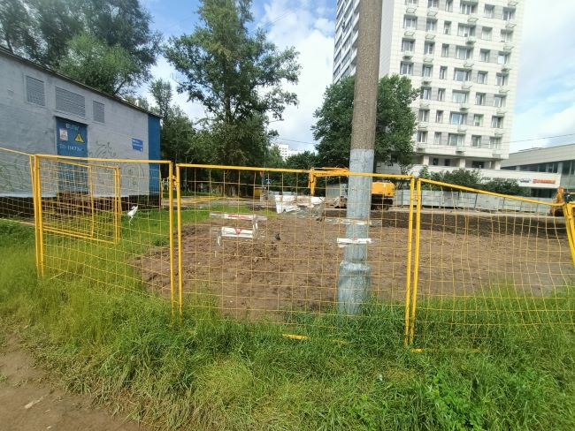 Менять старые трубы на новые рядом с остановкой «Дом быта», слева от длинного корпуса 435, начали почти месяц назад — въезд для автомобилей закрыли, а для пешеходов оставили узкую дорожку.