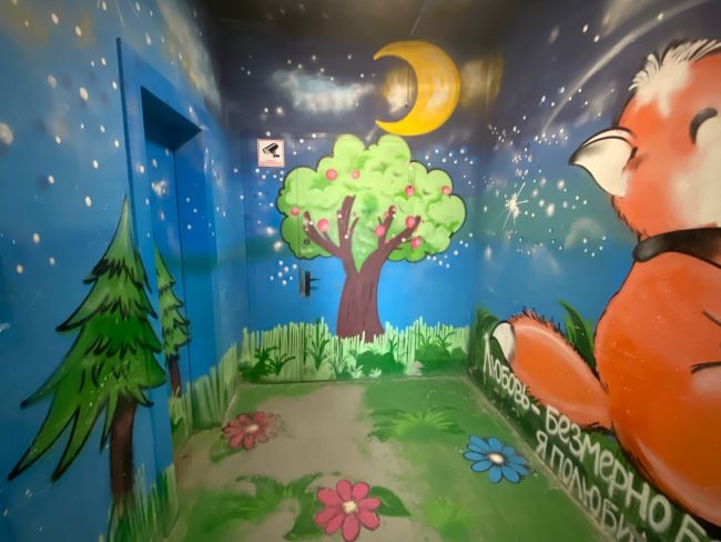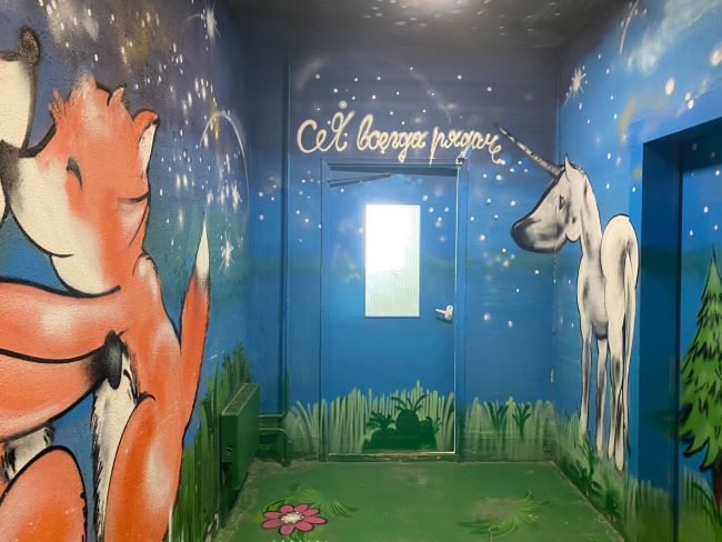 «Сейчас она уже здесь не живет, а рисунки остались, — рассказала жительница дома Карина. — Это очень мило и романтично, заходишь, как будто, в другое пространство».