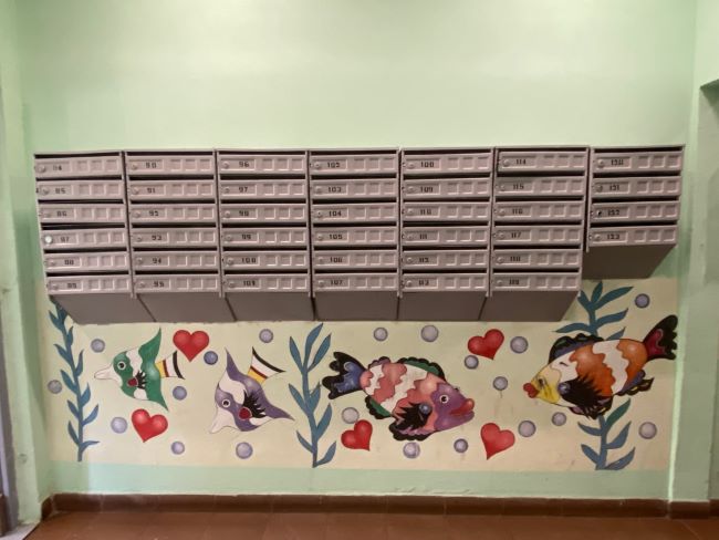 «Нам очень это нравится! И память о человеке, и приятно посмотреть. Хотя многие осуждают, говорят, что это некрасиво, мы их мнение не разделяем. Также у нас еще есть тут картины, на стене, на лифте. Их создал еще один житель дома, он работал в рекламе и хотел еще больше украсить пространство», — рассказала консьержка Алла Владимировна.