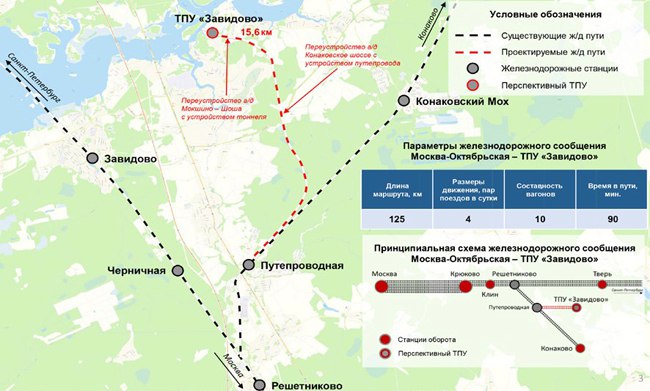 Предполагалось пустить по этой дороге «Ласточки-экспрессы», чтобы доезжать от Москвы до курорта за час. ТПУ объединит водный, автомобильный и железнодорожный транспорт. Речной порт здесь строится и уже принимает суда.