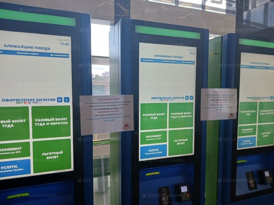 «По техническим причинам в билетопечатающих автоматах оплата проездных документов по безналичному расчету и СБП временно недоступна — обратитесь в билетную кассу». Такое объявление на автоматах в Крюково уже четвертый день.