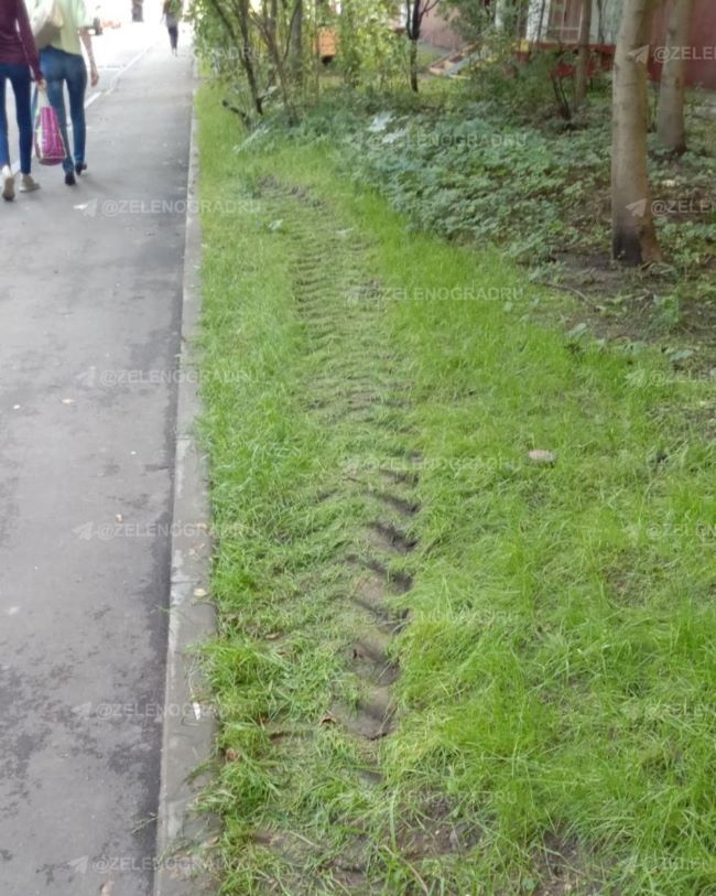 «Возле 433 корпуса сначала сделали новый тротуар, а теперь по нему ездит тяжёлая техника к раскопкам возле корпуса 435 и к благоустройству корпуса 455. В итоге новый тротуар уже придавлен, бордюры крошатся, на газонах колея».