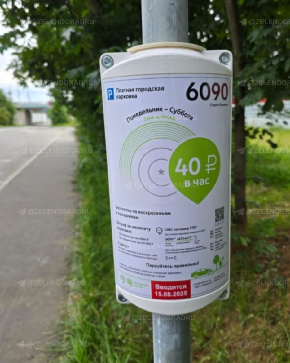 На столбах уже ставят таблички с условиями парковки. Стоимость — 40 рублей в час с понедельник по субботу.