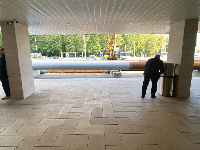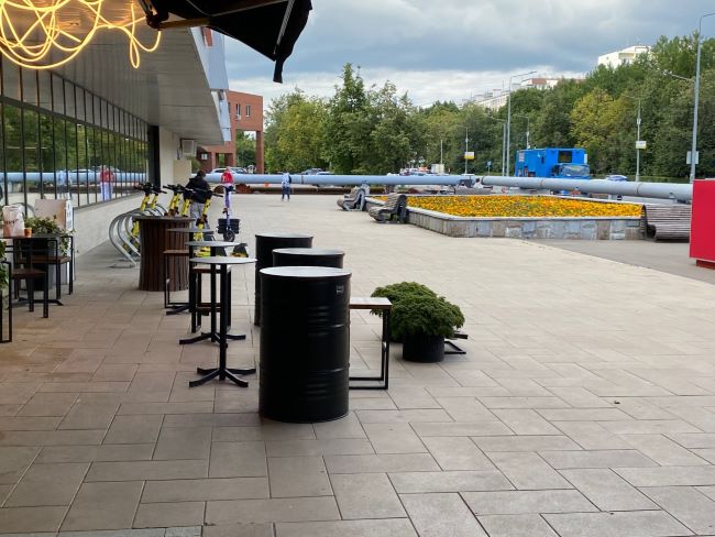 «Многие подходят и спрашивают: что у вас тут происходит? Особенно тяжело стало родителям с колясками и людям с ограниченными возможностями — им теперь можно проехать только за углом здания», — рассказывает Мария, бариста из кофейни Ruma’s. Посетителей на летней веранде напрягает еще и внешний вид на трубы.