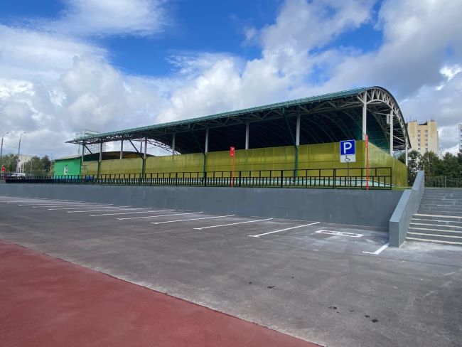 Изначально работы в спорткомплексе на Озерной аллее, 2 должны были занять около десяти месяцев, однако задержались больше чем на полгода.