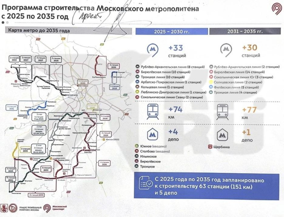 «До 2030-го года мы построим порядка 30 станций, 2035-го — еще 30. Таких рывков, как мы строили Большую кольцевую линию метро, чтобы хоть немного разгрузить метрополитен, сейчас нет. В спокойном, плановом режиме строим Рублёво-Архангельскую ветку, Бирюлёвскую и Троицкую линии метро. Рассматриваем сейчас линию на Сколково, строим станции „Гольяново“ и „Печатники“», — сказал мэр Собянин.