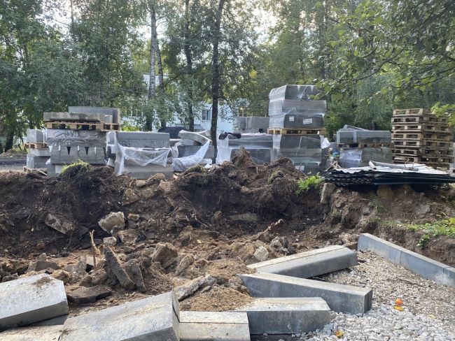 Похожая ситуация в 4-м микрорайоне — укладывали асфальт у корпусов 405, 455, 409 и 410. Пройти отсюда к ближайшим корпусам школы 1353 (404А и 419А), а также к школе «Гармония» (корпус 421А) сложно: брусчатка, шум, техника и пыль. Рабочие признают, что затянули с окончанием работ, но тоже обещали успеть к 1 сентября.