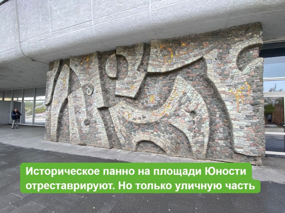 Объемное мозаичное панно на здании с магазином и ресторанами будут восстанавливать — возможно, начнут в этом году. Это касается в основном внешней — уличной — части композиции, поскольку большую часть внутренней разрушили ещё в 1990-е годы. Обещают восстановить прежний вид панно с помощью гранита, кусочков смальты или кускового стекла.