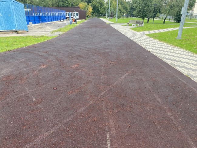 - На Озерной аллее, рядом с «Орбитой», обновили хоккейную коробку, установили оборудование для намораживания льда и уложили искусственную траву. Построили павильон для переодевания, туалеты и гараж. Внутри раздевалки ремонт не закончен — стоят лишь металлоконструкции. Туалеты и сама раздевалка закрыты. У катка уложили новое асфальтобетонное покрытие, включая парковку. На территории не убрали строительный мусор.