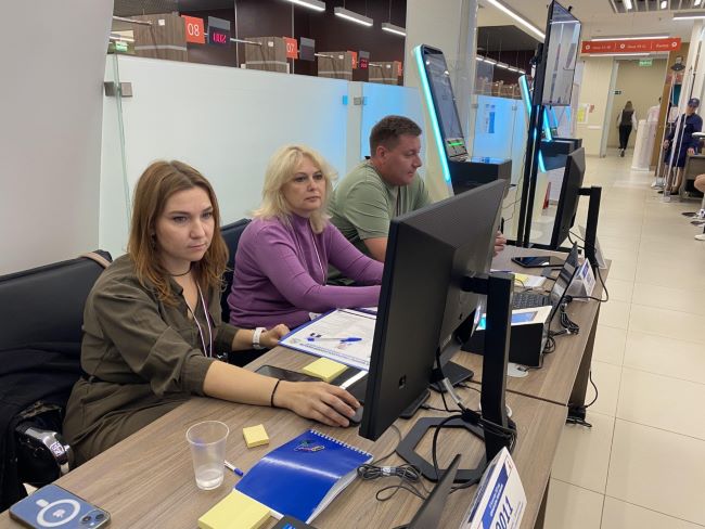 Участок для голосования открылся в центре «Мои документы» в ТЦ «Зеленоградский» возле станции Крюково — здесь с 12 по 14 сентября работает экстерриториальный участок для жителей тех регионов, где проходят выборы глав. Для участия в голосовании они могли подать заявление через «Госуслуги», а сейчас проголосовать через электронный терминал.