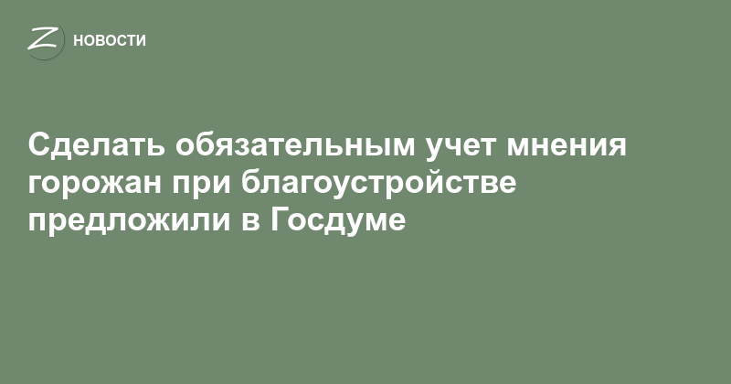 Группа депутатов от партии «Новые люди» внесла законопроект, обязывающий местные власти утверждать порядок участия граждан в обсуждении и планировании проектов благоустройства. Сейчас федеральный закон закрепляет только право жителей участвовать в реализации уже утверждённых мероприятий, но не на стадии их подготовки.