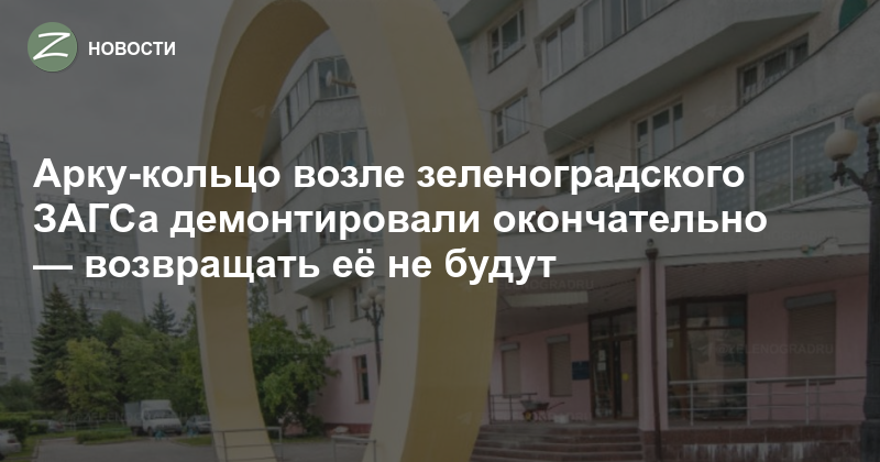 Вообще, постоянная уличная «арка-кольцо» у входа — не массовая практика для московских ЗАГСов, такие арки могут ставить как временный декор или фотозону. Но примеры использование мотива колец в городской архитектуре существуют: например, в Митино строят новый дворец бракосочетания, здание которого по форме напоминает свадебные кольца (по крайней мере, так говорят архитекторы). Поэтому такой уличный объект, как был в Зеленограде, — редкий локальный пример. Теперь его не будет.