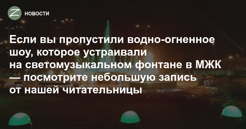 Если вы пропустили водно-огненное шоу, которое устраивали на светомузыкальном фонтане в МЖК — посмотрите небольшую запись от нашей читательницы21.09.2025ZELENOGRAD.RU