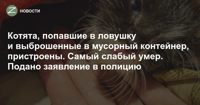 Трёх котят, приклеенных к ловушке против крыс, нашла уборщица в углу мусорного контейнера в 12-м микрорайоне: они были накрыты куртками, но один из них пищал. Она позвонила местной жительнице Ирине, которая подкармливает уличных кошек.