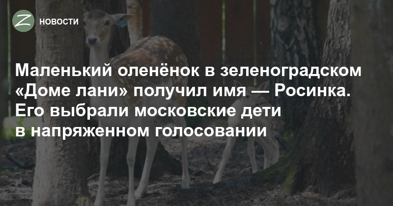 Росинка — потому что оленёнок родился 12 июня, в День России. Другие варианты: Пятнышко, Июнька, Лето.