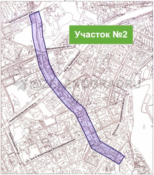 Он пройдет от улицы Дыбенко до Кронштадтского бульвара (часть №1) и от Кронштадтского бульвара до Большой Академической улицы (часть №2). Фактически получится дублер Ленинградского шоссе от МКАДа (М-11) до ТТК.