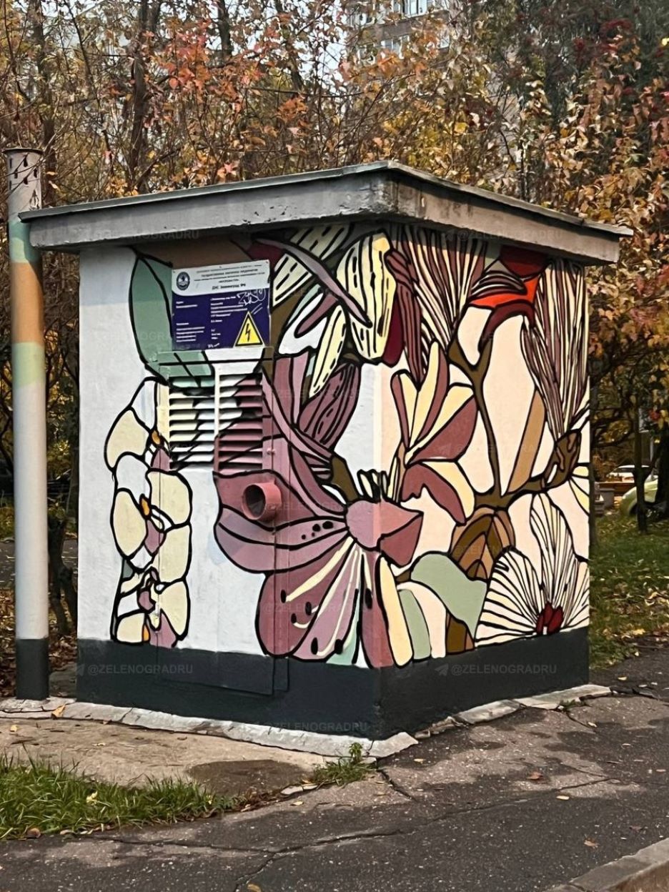 Небольшое техническое сооружение в 16-м микрорайоне превратили в яркий декоративный арт-объект, оформленный в стиле ар-нуво. Это художественное направление рубежа XIX-XX веков, вдохновлённое природой и плавными линиями растений (в России известное как «модерн»).