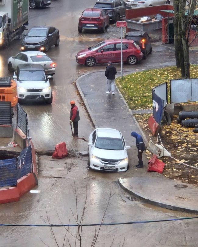 К 15 часам дыру заделали. Однако что происходит под заплаткой в этом и других местах, непонятно. Возможно, риск провала сохраняется в других местах.