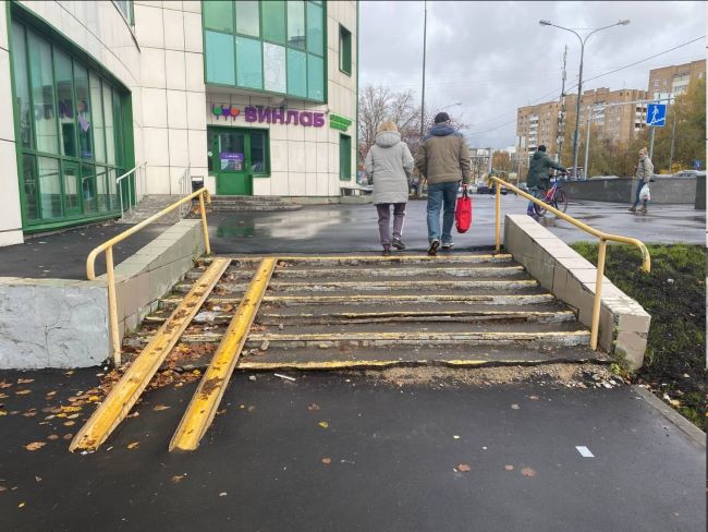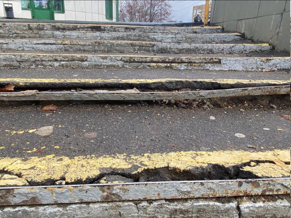Лестница у корпуса 848, между магазинами «Магнит» и «Винлаб», действительно выглядит жутко. Ремонтировать её надо было уже давным-давно.