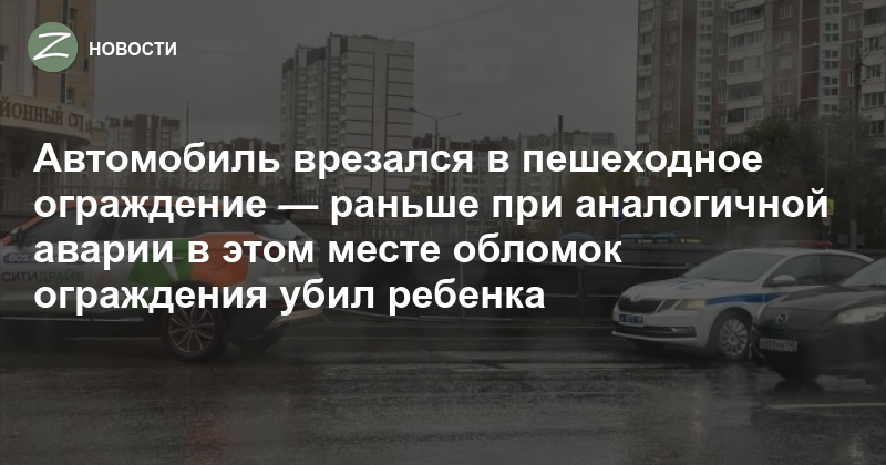 Ограждение тротуара на перекрестке Панфиловского проспекта и улицы Каменка, возле здания суда, рассыпалось после того, как в него врезался легковой автомобиль. Может показаться, что ограждение спасло пешеходов от автомобиля, но это не так.