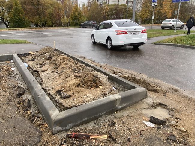 Сейчас на площадке демонтированы старые бордюры, установлены новые, в том числе вдоль тротуара, прилегающего к парковке.