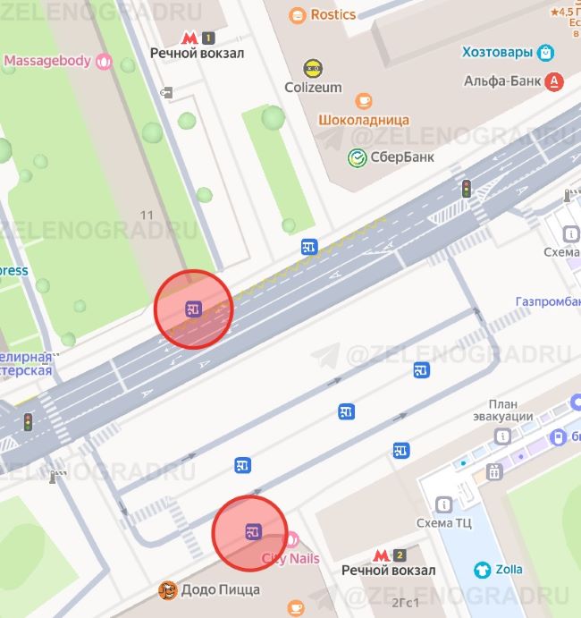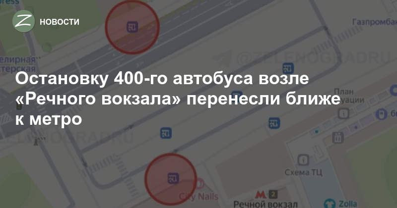 С 18 октября 400-й автобус останавливается возле выхода №2 из метро (на площади, остановка 2А), затем выезжает на Фестивальную улицу и останавливается ближе к выходу №2 из метро (остановка 1А) и затем едет на Ленинградское шоссе в Зеленоград.
