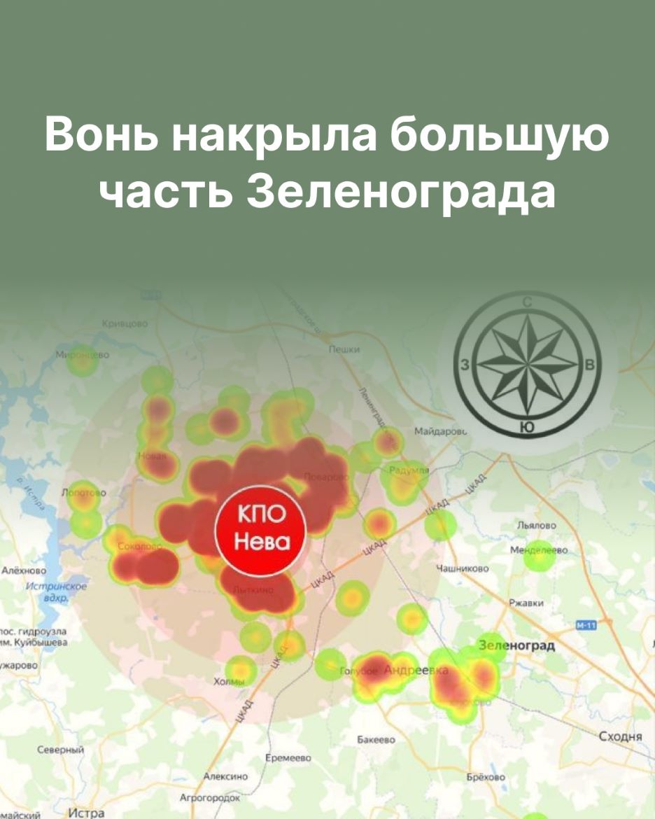 Это далеко не первый раз, когда в Зеленограде ощущают «запах помойки», однако официальный представитель КПО отрицает связь запаха со своей деятельностью: «расстояние до Зеленограда большое, а рядом есть другие промышленные предприятия, которые также могут быть источником неприятных выбросов».