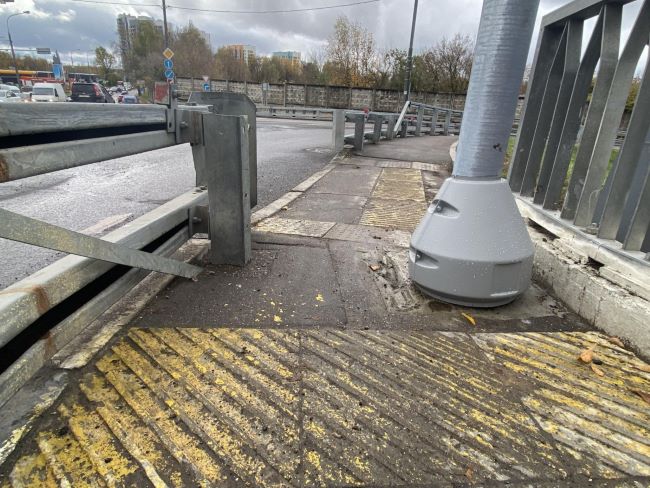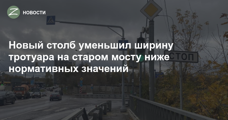 Минимальная нормативная ширина тротуара должна составлять не менее 1,2 метра, а в узких местах — не менее 0,9. Для проезда инвалидной коляски требуется не менее 90 см. На противоположной стороне моста ширина около 110 см.
