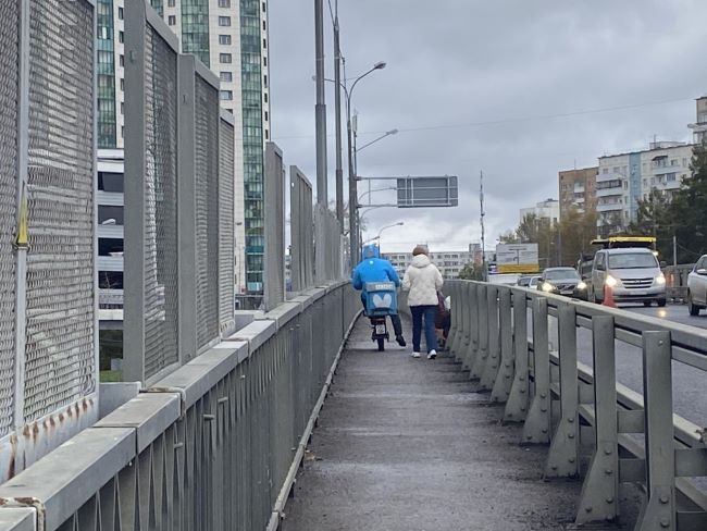 По нормативам — это минимальная ширина для двери в кухню, но никак не для тротуара, по которому постоянно ходят люди, ездят курьеры на электровелосипедах, ходят родители с колясками — ходить здесь опасно.